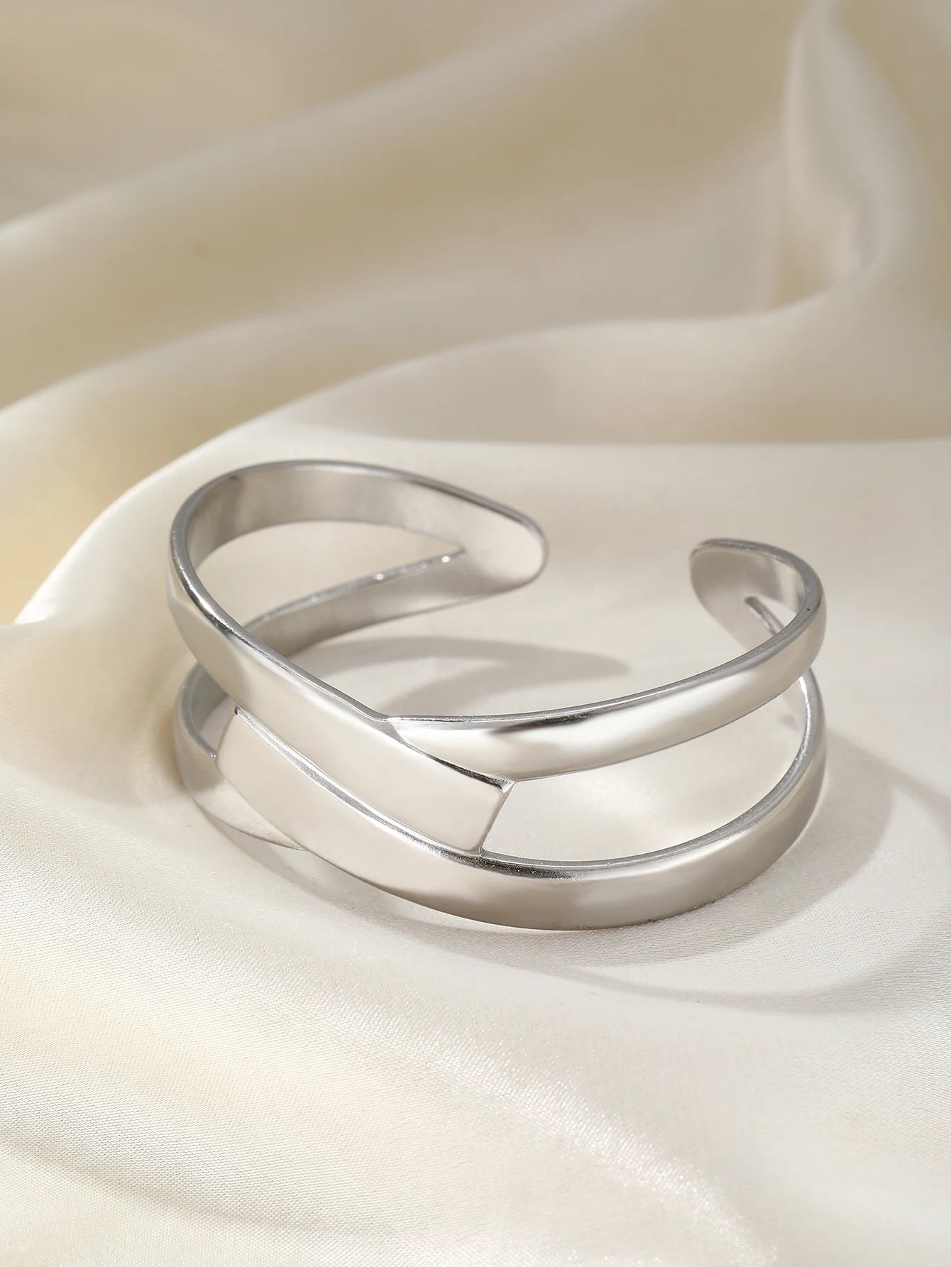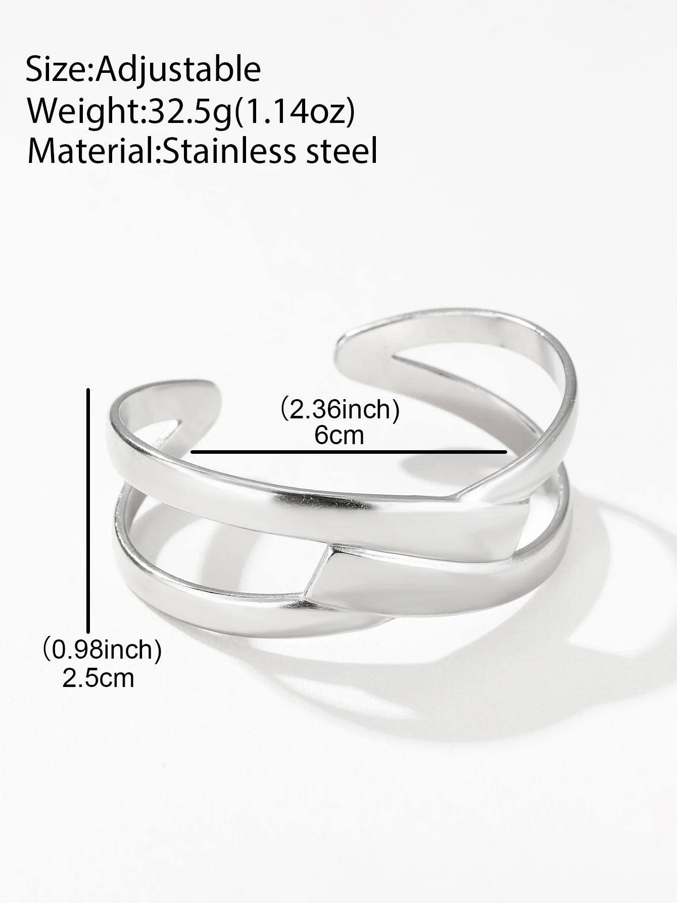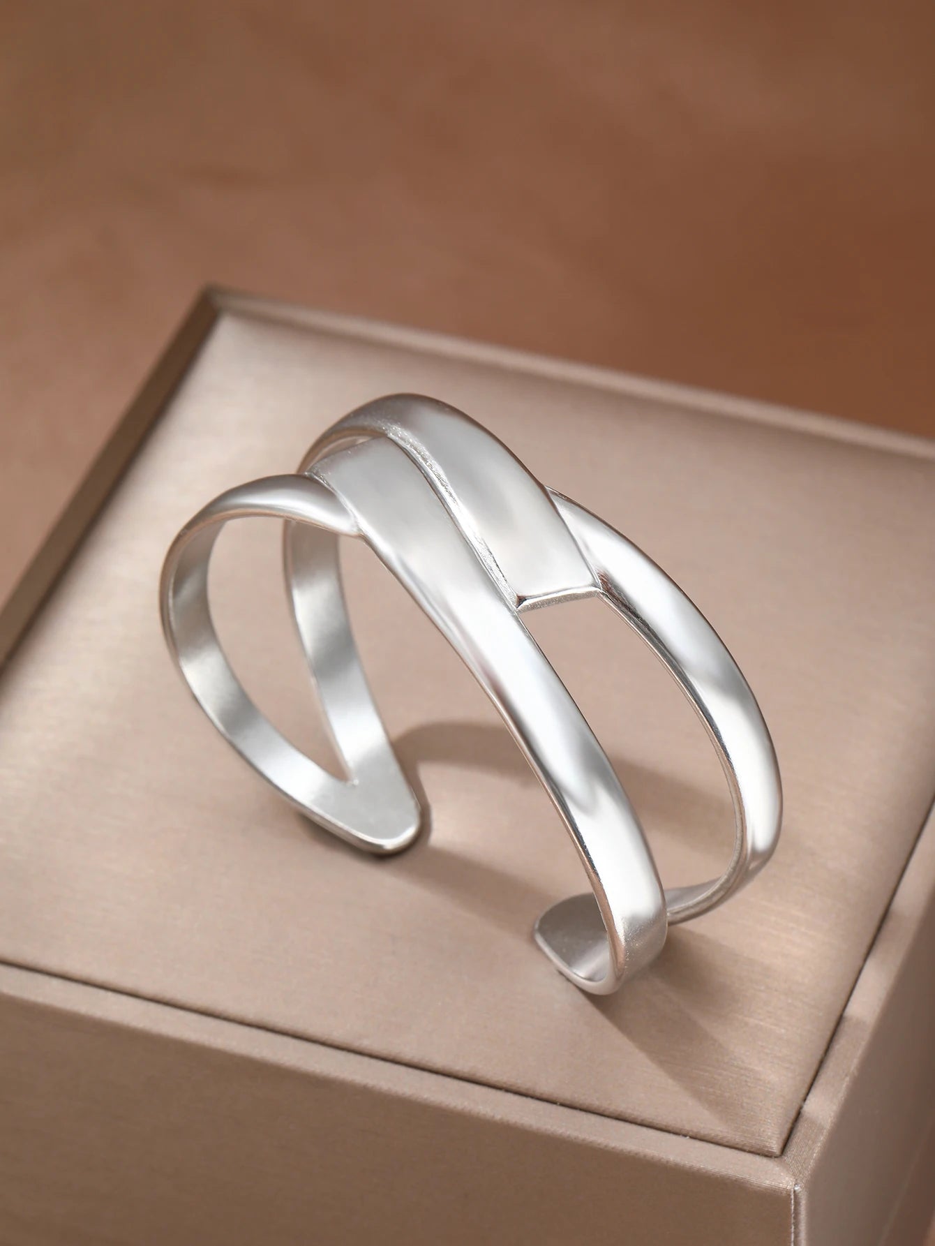 This exquisite stainless steel bracelet combines light luxury with simple fashion, featuring a geometric weave design that offers both elegance and durability. Crafted from high-polished stainless steel, this adjustable cuff bracelet is perfect for adding a subtle yet sophisticated touch to any outfit.
