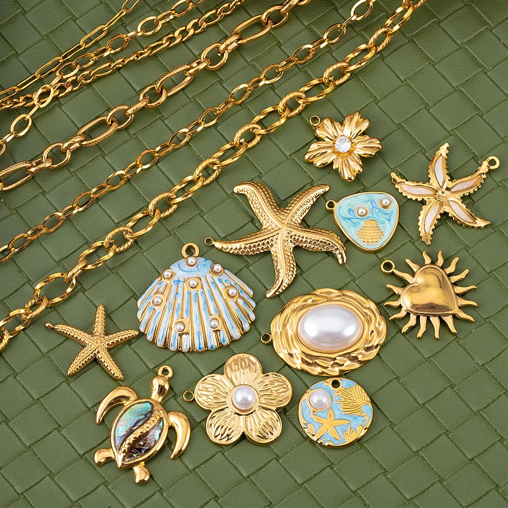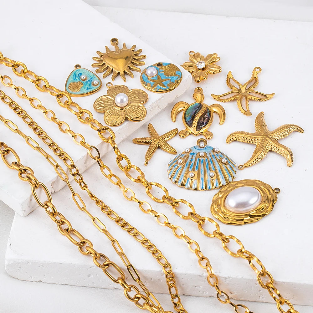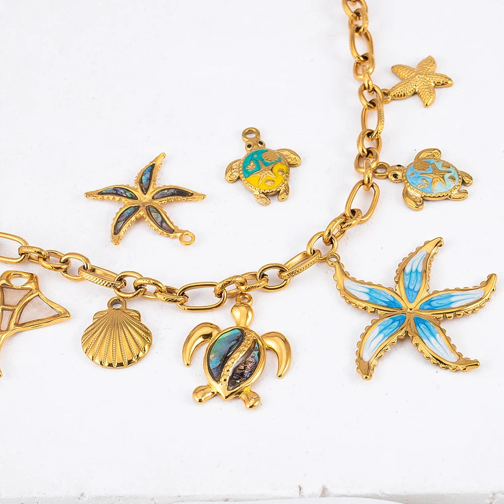 This collection features high-quality stainless steel pendants designed for versatile jewelry making. Perfect for DIY projects, these marine style pendants add a trendy, cute touch to your bracelets, necklaces, or earrings.