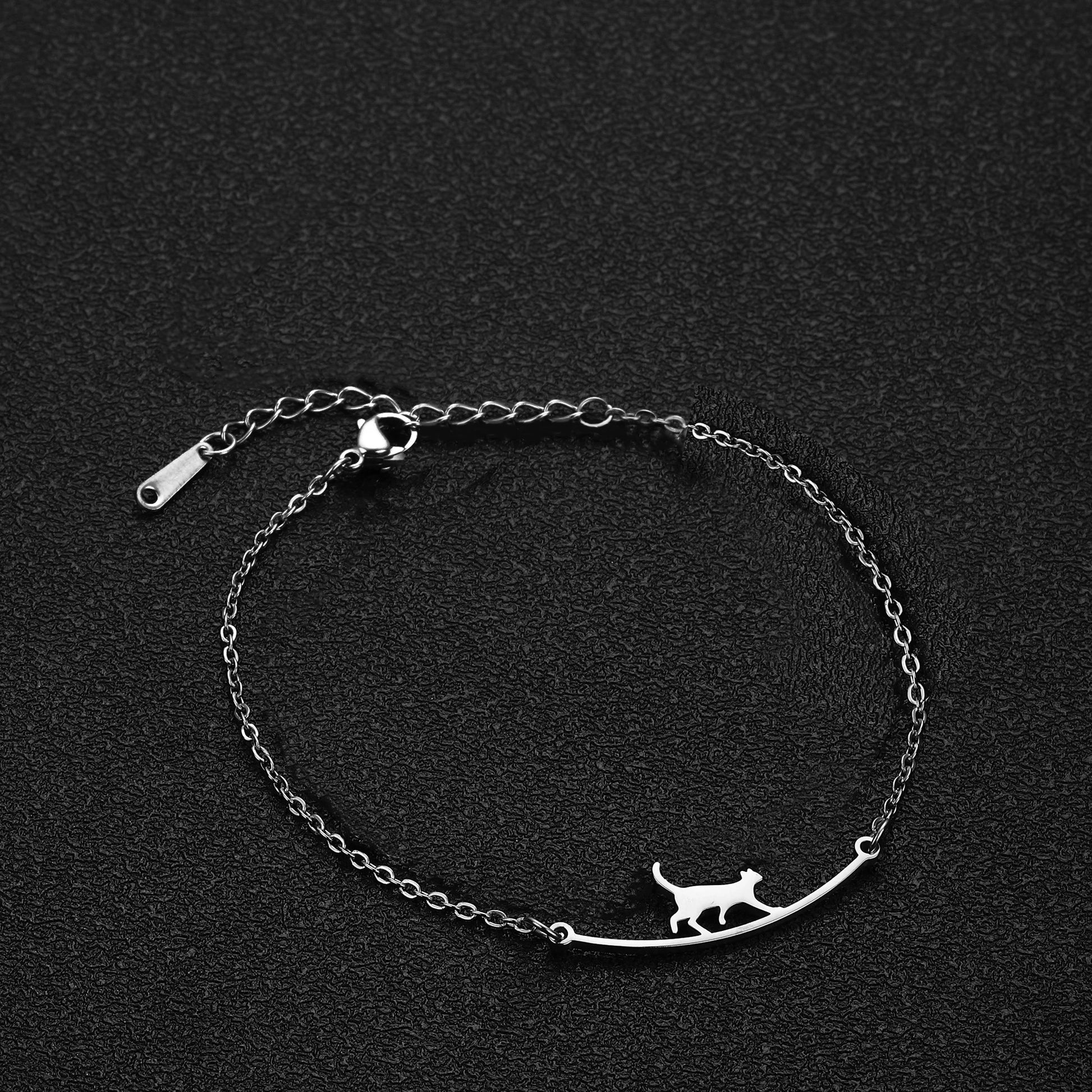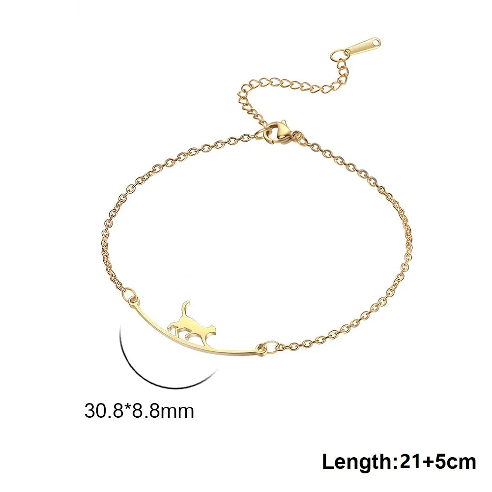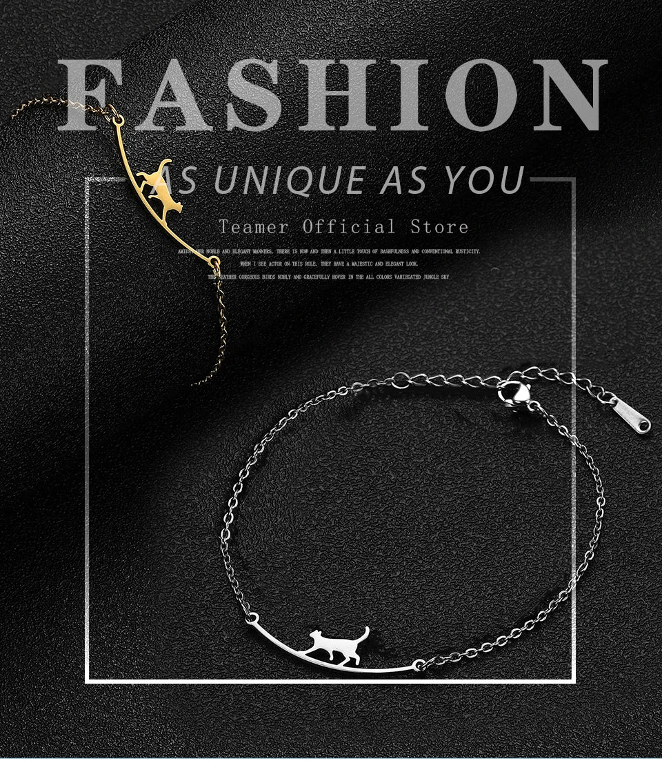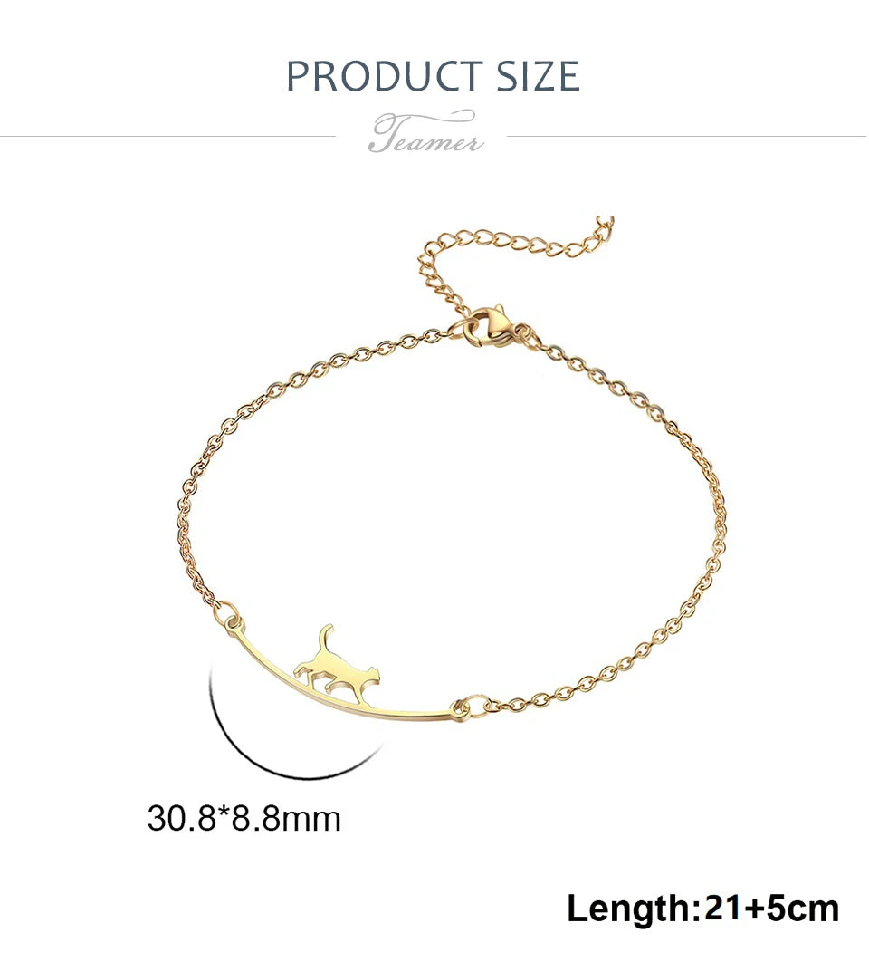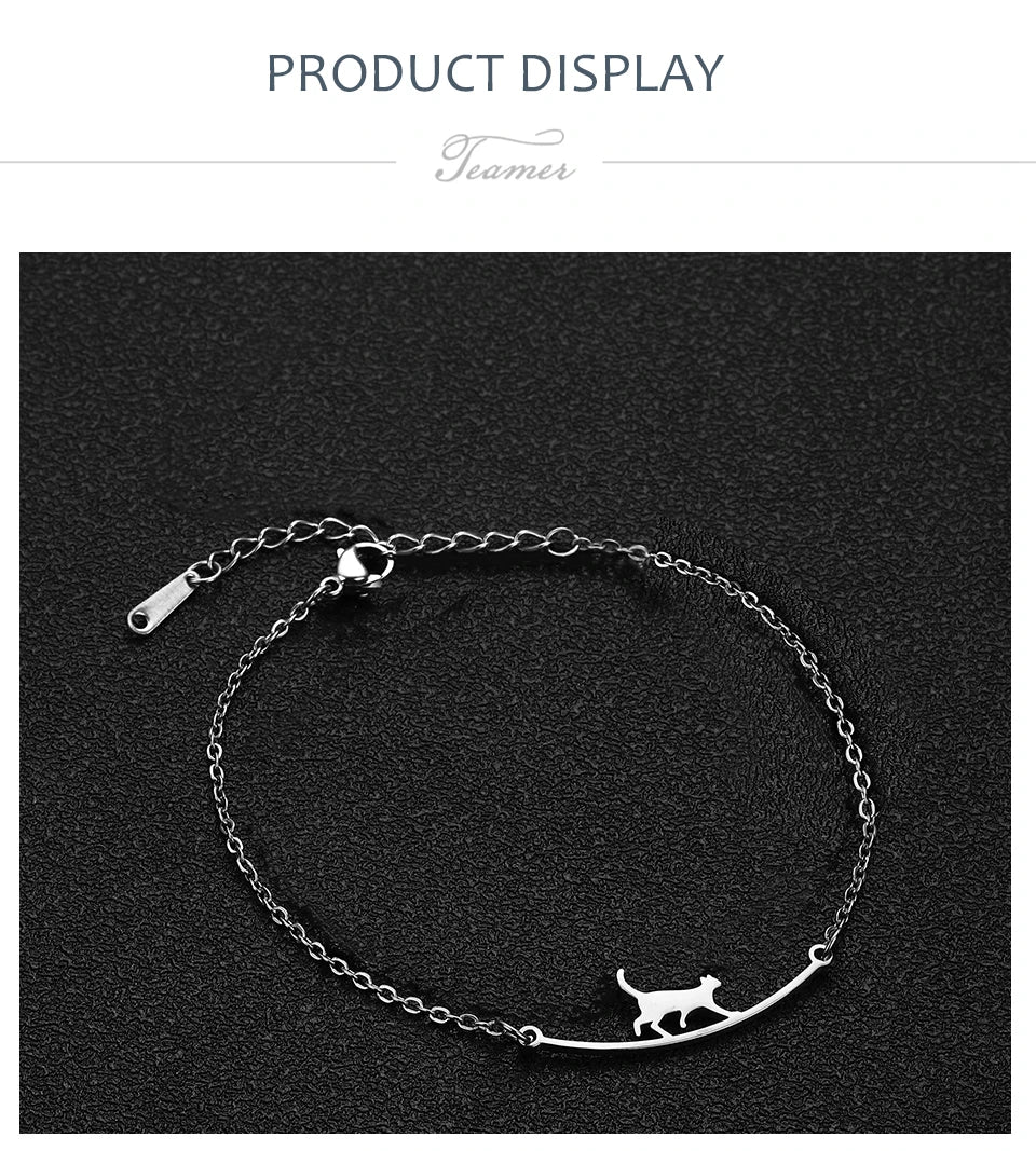 Teamer Cute Walking Cat Anklets for Women Stainless Steel Jewelry Foot Bracelet Fashion Summer Beach Accessories 2025 Wholesale