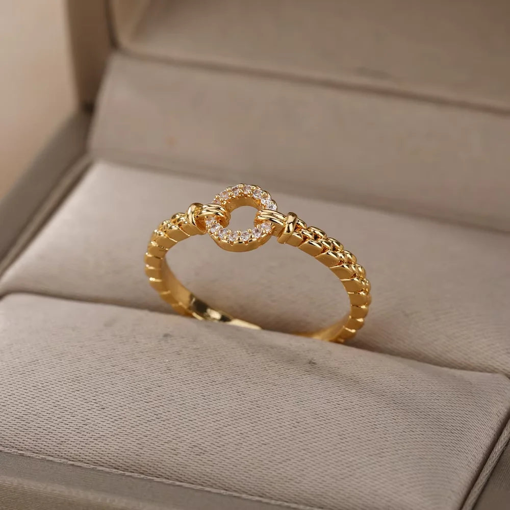 Zircon Round Rings For Women Punk Rock Chain Esthetics Open Adjusted Ring Accessories Finger Jewelry Dainty Gift Bijoux Femme