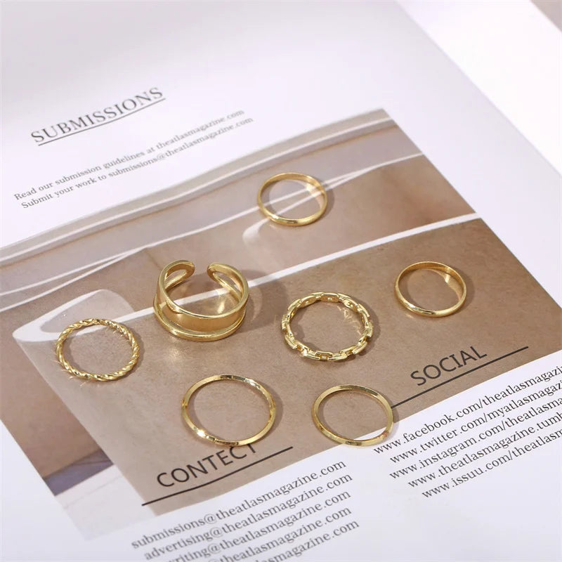 7pcs Fashion Jewelry Rings Set Hot Selling Metal Alloy Hollow Round Opening Women Finger Ring For Girl Lady Party Wedding Gifts