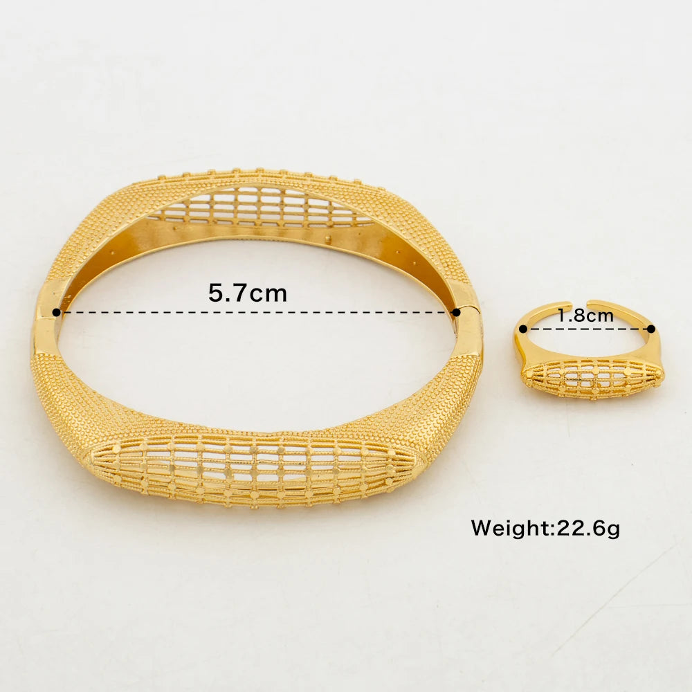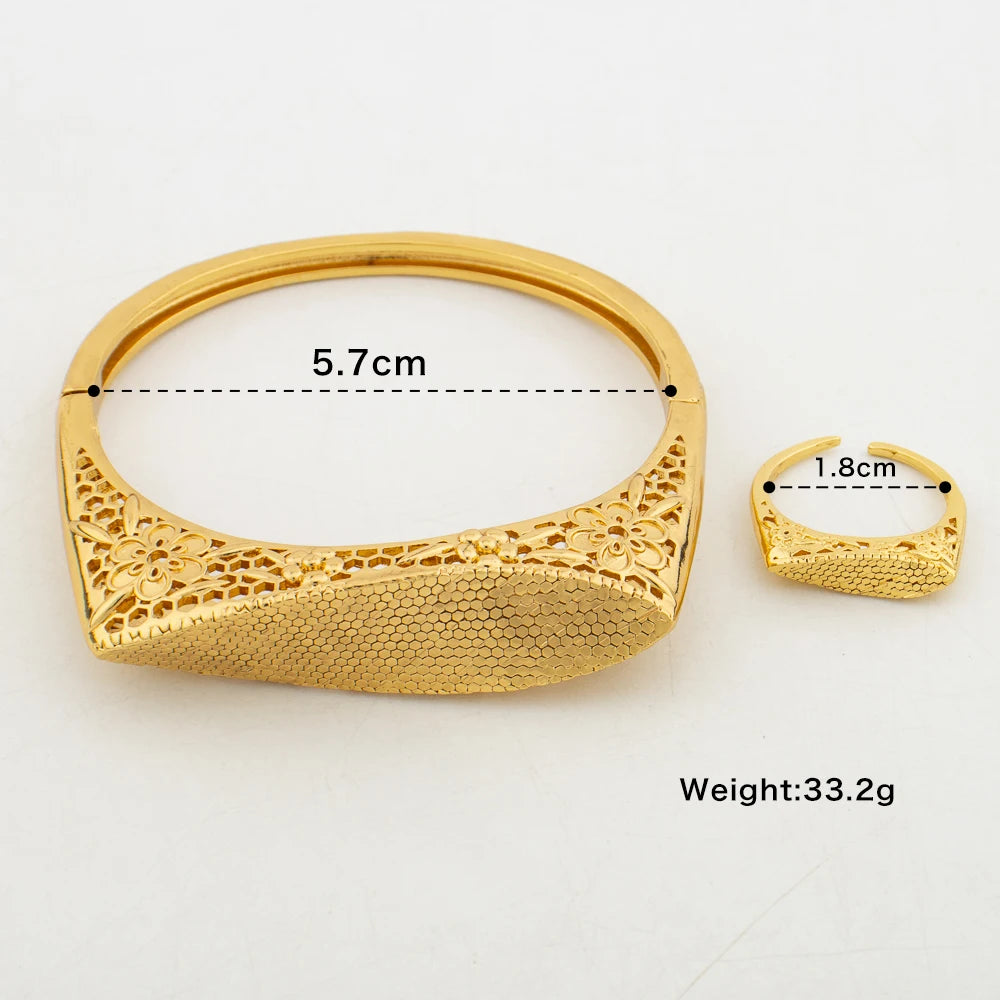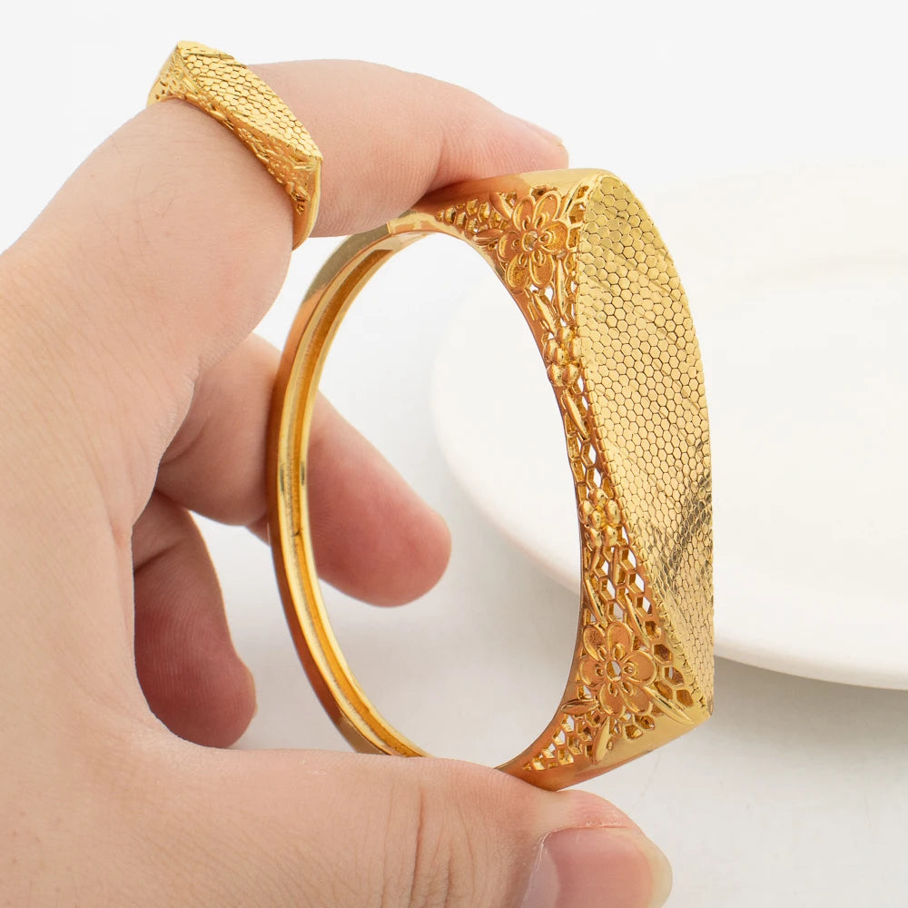 Pulseiras com pingentes e anéis Dubai, joias para noivas, banhadas a ouro 18K, braceletes da moda para mulheres, anel aberto, festa, casamento, presentes