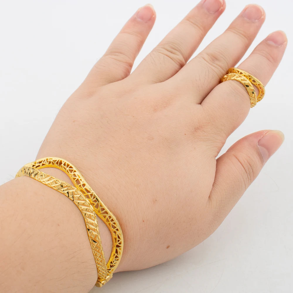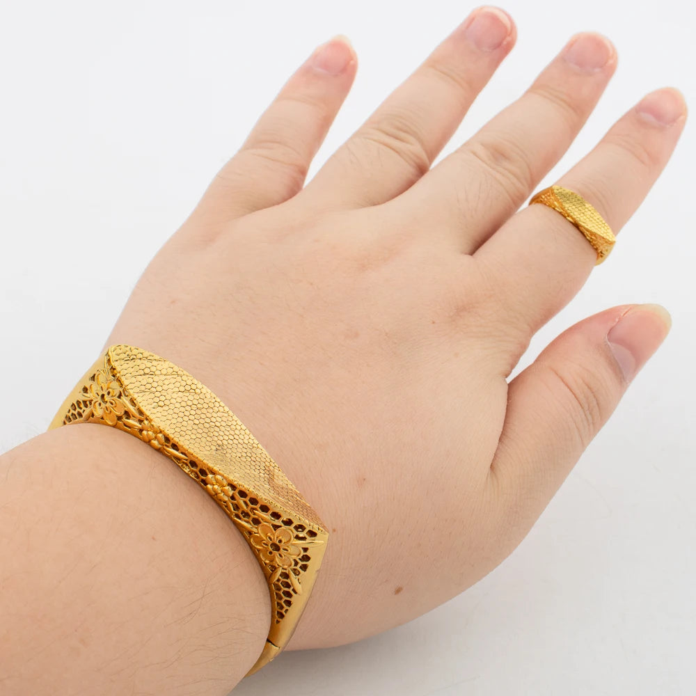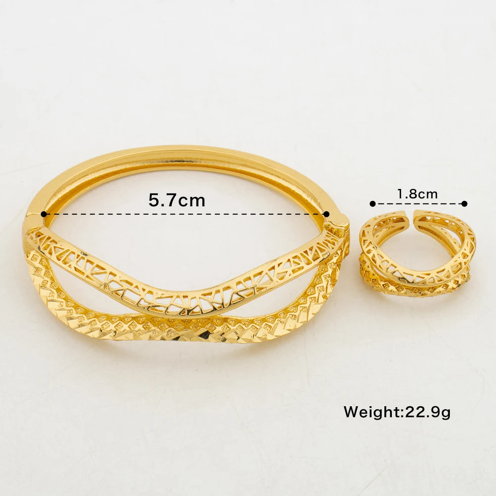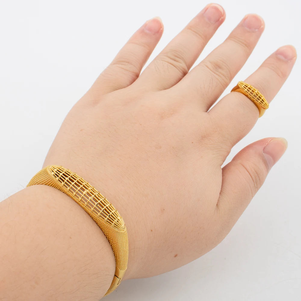 Pulseiras com pingentes e anéis Dubai, joias para noivas, banhadas a ouro 18K, braceletes da moda para mulheres, anel aberto, festa, casamento, presentes