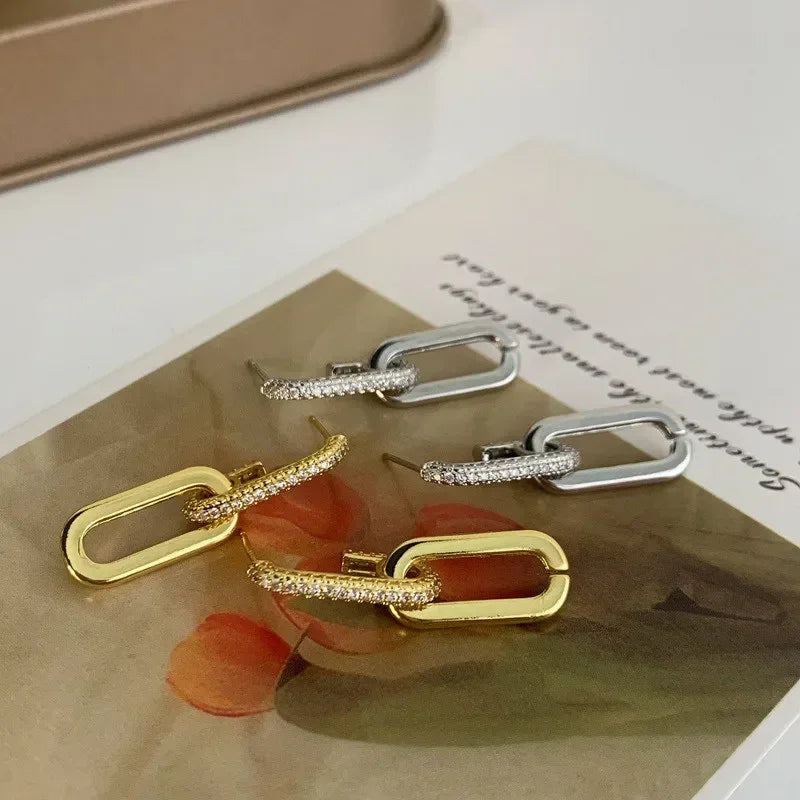 Estes requintados brincos de argola apresentam um design geométrico repleto de cristais que adiciona brilho e sofisticação a qualquer look. Feitos em liga de zinco de alta qualidade com acabamento galvanizado, oferecem durabilidade e um brilho deslumbrante e duradouro.