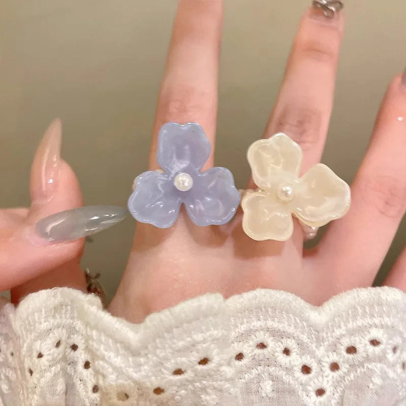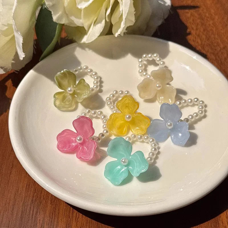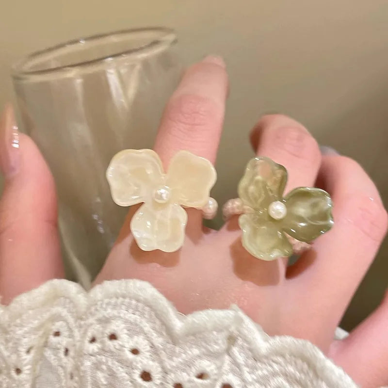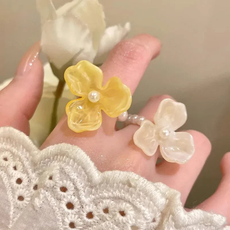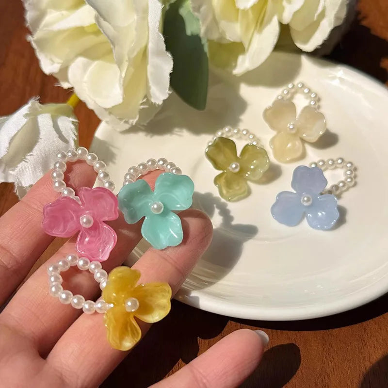 Anéis de acrílico com flores de pérolas artificiais | Anéis da moda para mulheres e meninas