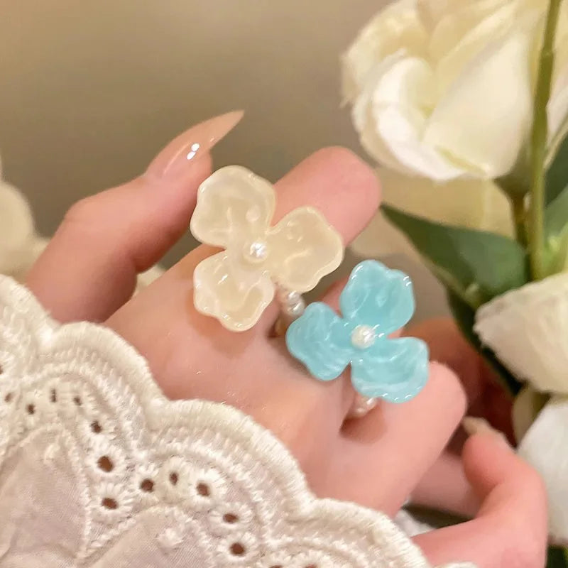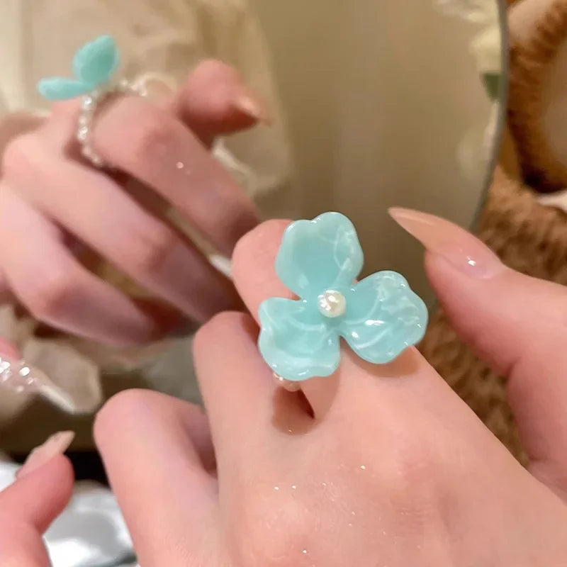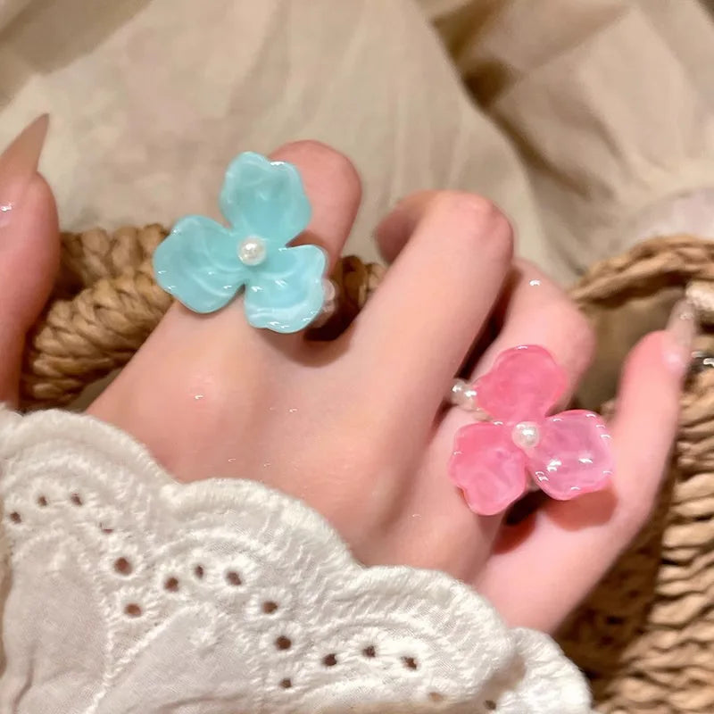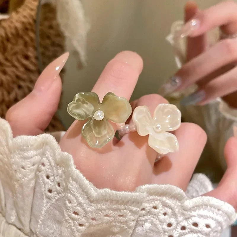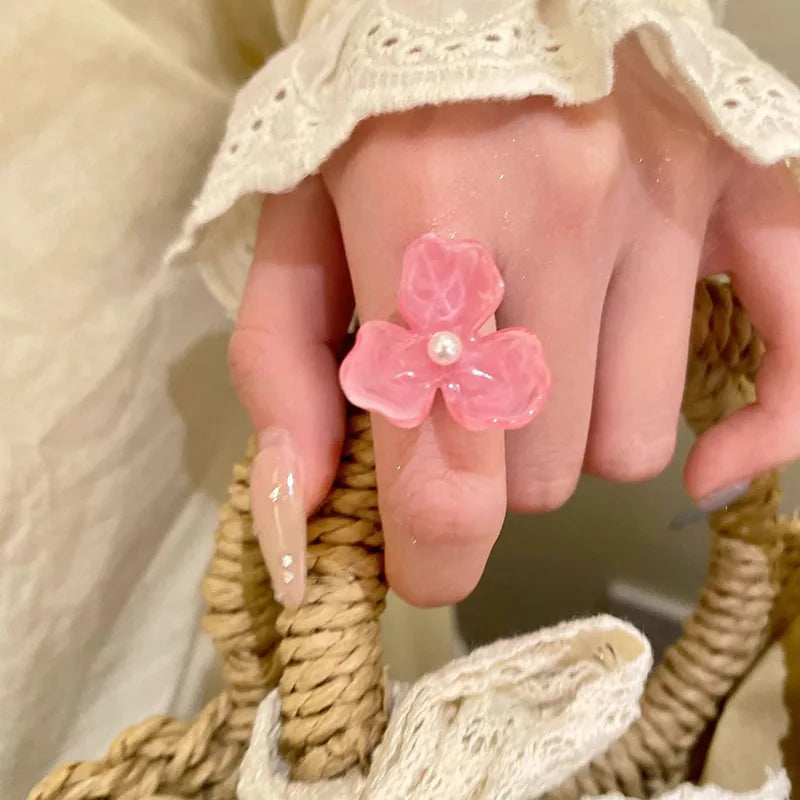 Anéis de acrílico com flores de pérolas artificiais | Anéis da moda para mulheres e meninas