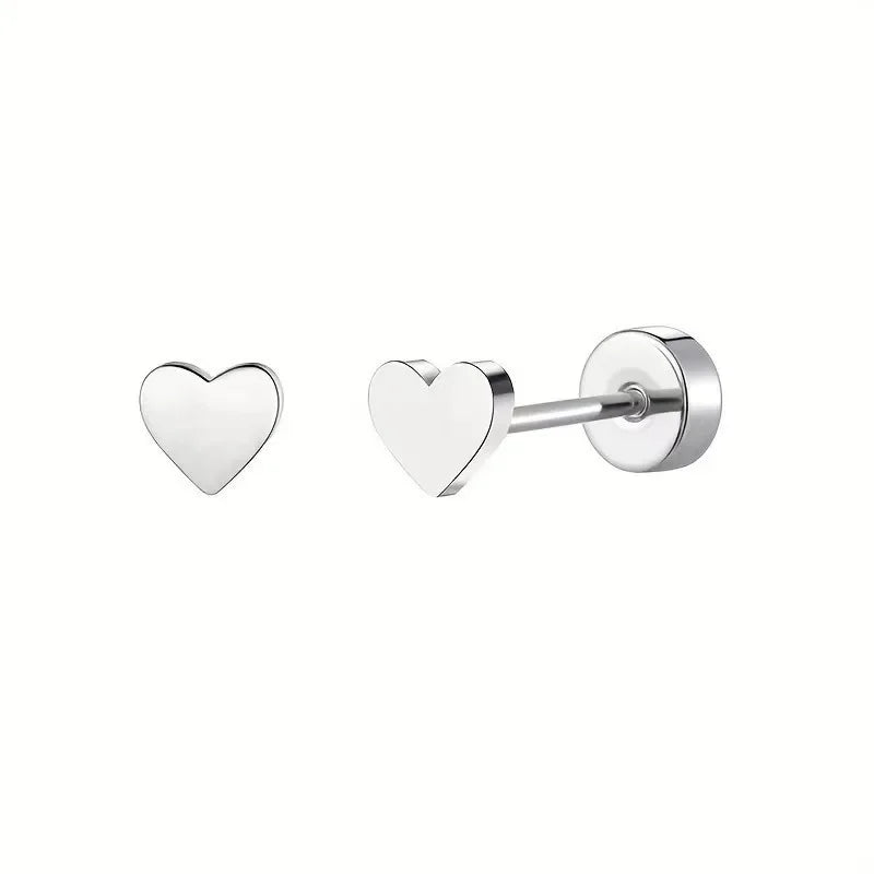Par de brincos de pino com fundo plano e hastes banhadas a ouro branco K para mulheres | Brincos de coração