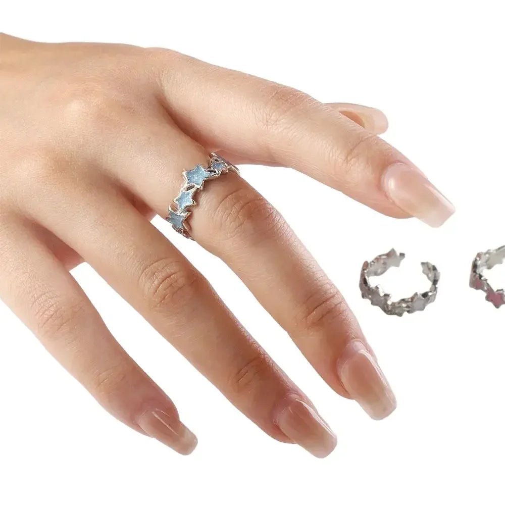 Anéis personalizados com estrelas irregulares coreanas para mulheres – Acessórios de joias com fivela geométrica Kpop