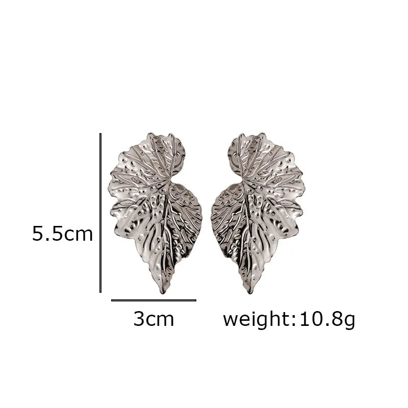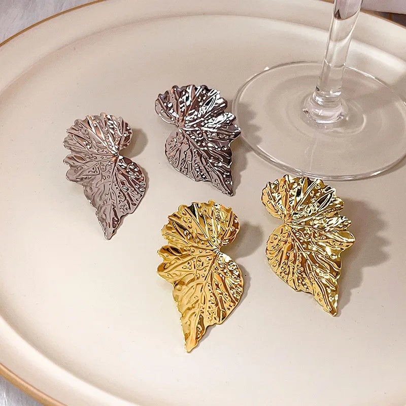 Brincos de folha de metal retrô para mulheres, brincos de cor dourada e prateada, estilo punk, joias da moda europeia, presente