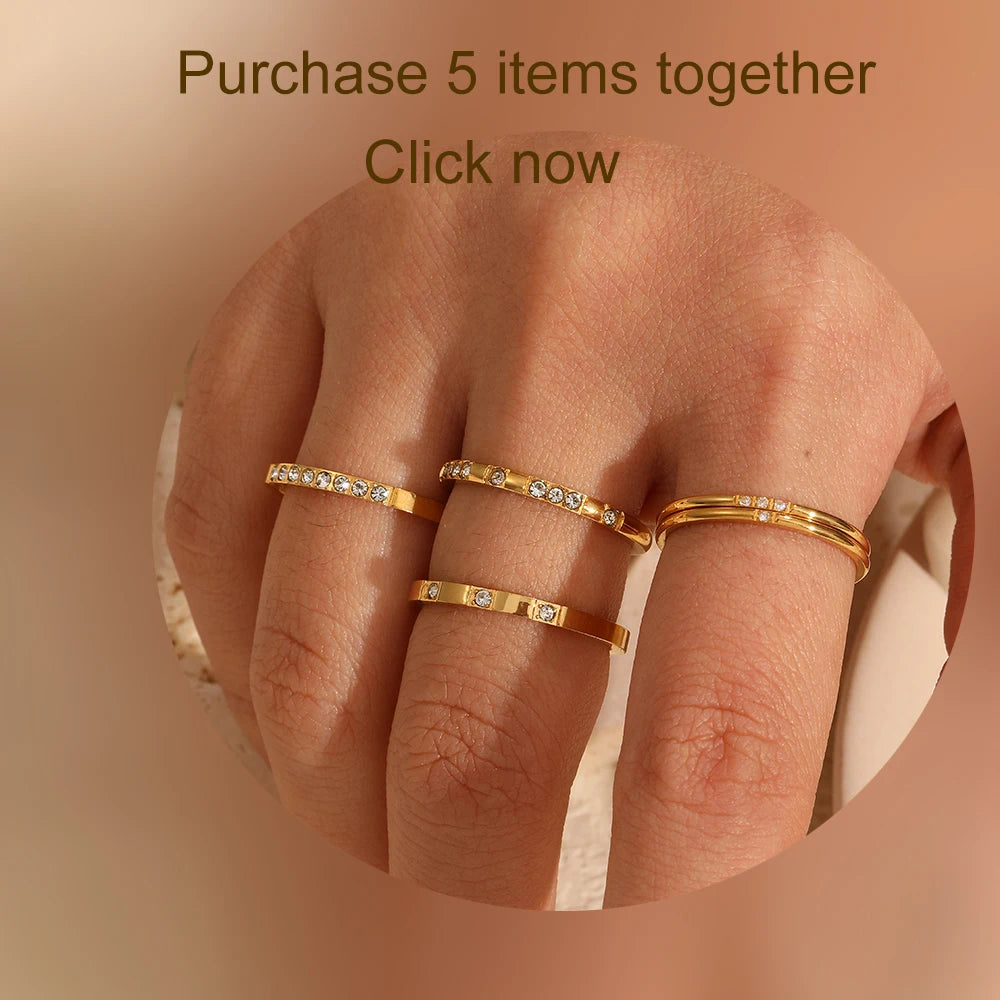 Estes delicados anéis são feitos de aço inoxidável durável e revestidos com um luxuoso banho de ouro 18K, projetados para oferecer estilo e resistência. À prova d'água e minimalistas, estes anéis de dedo oferecem um acessório versátil que complementa qualquer look, perfeito para mulheres que apreciam uma elegância sutil.