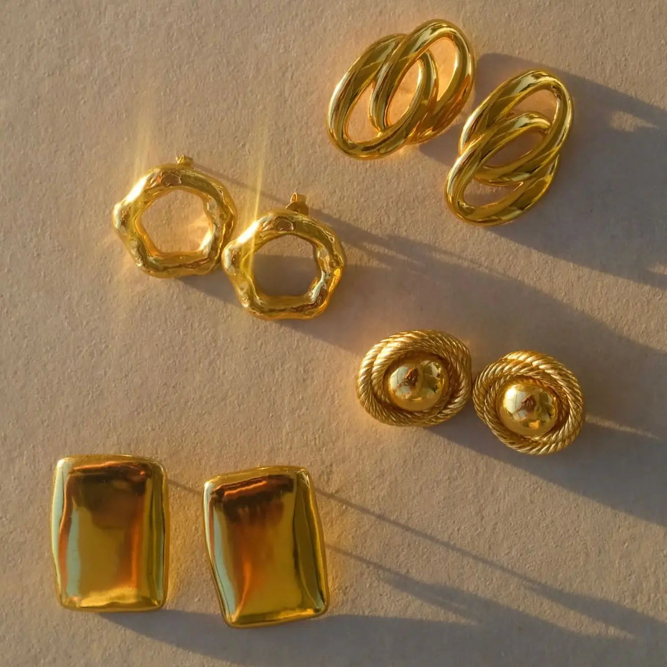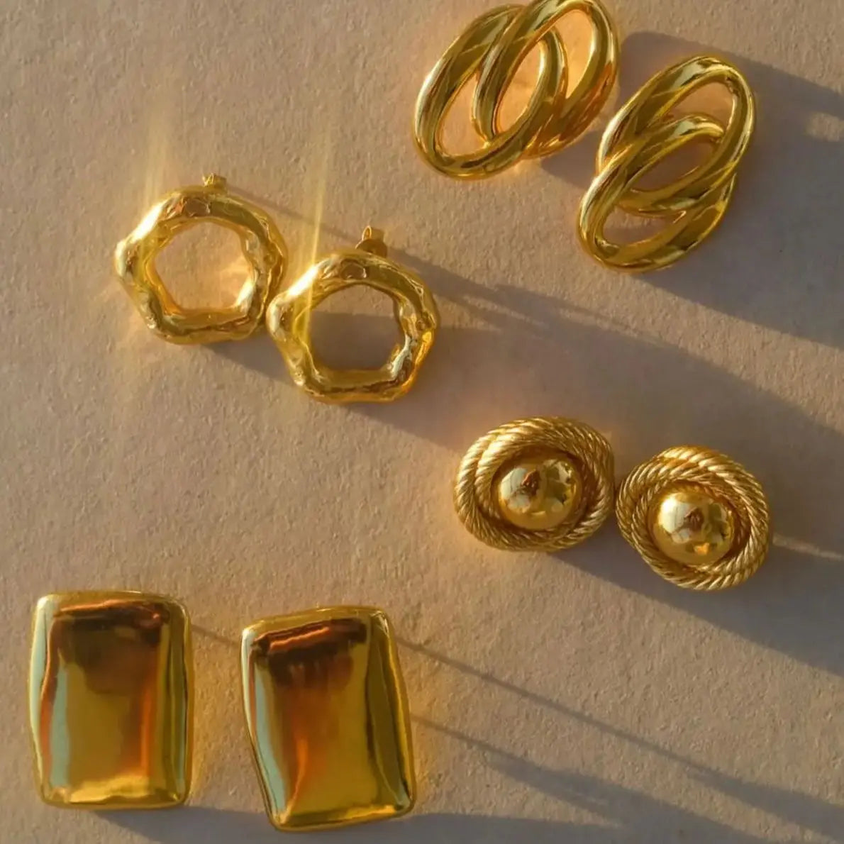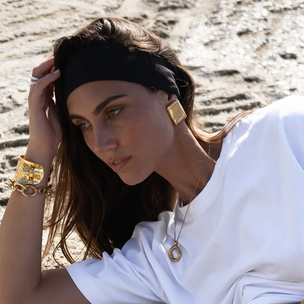 Feitos em aço inoxidável à prova d'água, estes brincos resistem à umidade e ao uso diário, mantendo seu acabamento texturizado em ouro. O processo de revestimento PVD deposita uma camada sólida de ouro que resiste a arranhões e descoloração, garantindo excelente desempenho e durabilidade. Perfeitos para joias versáteis do dia a dia, eles complementam qualquer look, protegendo contra alergias e danos ambientais.